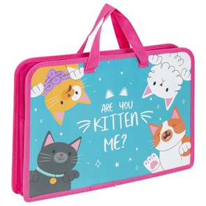 Папка на молнии с ручками ЮНЛАНДИЯ А4, 1 отделение, пластик, ширина 45 мм, "Cat gang", 272148