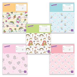 Тетрадь 12 л. ПЗБМ клетка, блестки, "Единорожки" (5 видов), 019418