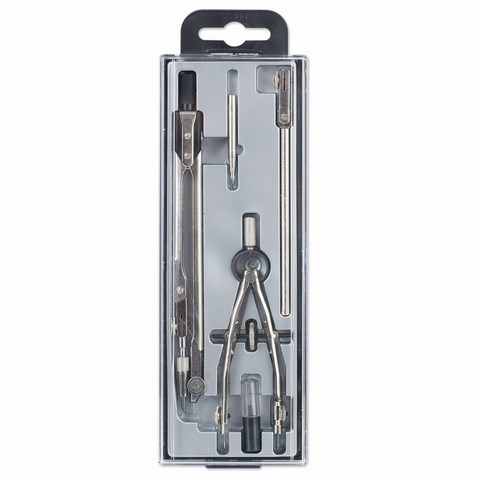 Готовальня предназначена для учеников старших классов и студентов. Инструмент отвечает всем необходимым требованиям ГОСТа. В комплекте: циркуль стальной, никелированный, кронциркуль, пенал с запасным грифелем, игольная вставка, удлинитель.