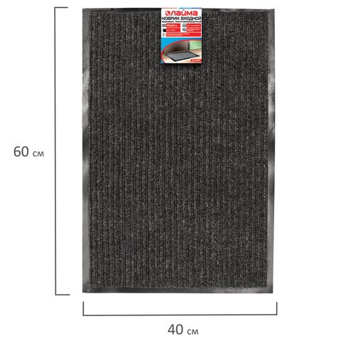 Коврик входной ворсовый влаго-грязезащитный 40х60 см, толщина 7 мм, ребристый, черный, LAIMA, 602863