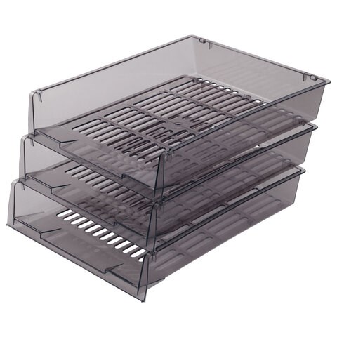 Лотки горизонтальные для бумаг, КОМПЛЕКТ 3 шт., 340х270х70 мм, тонированный серый, BRAUBERG "Office", 237257