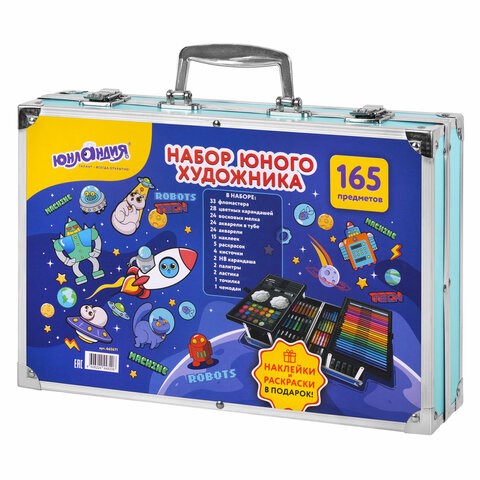 Набор ЮНОГО ХУДОЖНИКА "КОСМОС" для рисования и творчества в кейсе ЮНЛАНДИЯ, 165 предметов, 665671