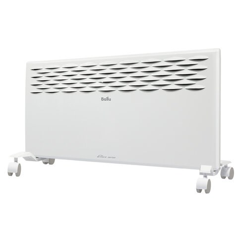 Обогреватель-конвектор BALLU BEC/ETER-2000 заключен в стальной корпус белого цвета защищенный от влаги и пыли по IP24-стандарту и дополнен колесиками для легкого перемещения по комнате.
