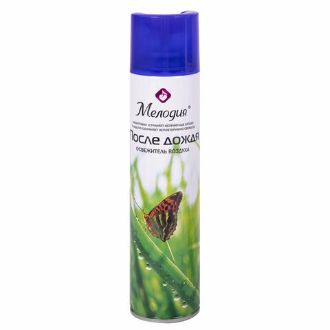 Освежитель воздуха МЕЛОДИЯ "После дождя" быстро и эффективно устраняет неприятные запахи и освежает воздух в жилых и бытовых помещениях. Имеет приятный стойкий аромат, который надолго наполнит помещение свежестью.