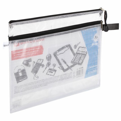 Папка-конверт на молнии А4 (335х243 мм), 2 отделения, ПВХ, прозрачная, 0,3 мм, BRAUBERG "Solid", 223889