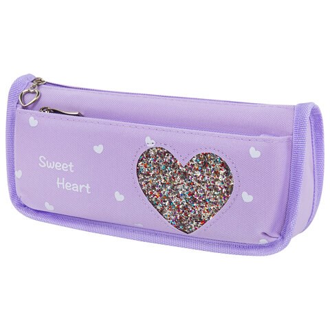 Пенал мягкий ЮНЛАНДИЯ, 2 отделения, полиэстер, "Heart", фиолетовый, 21х6х9 см, 270259