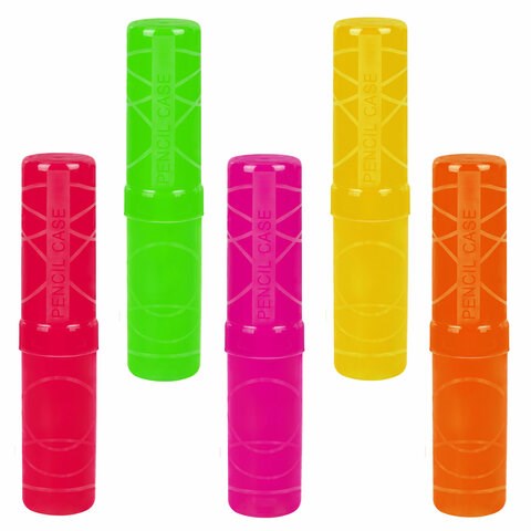 Пенал-тубус ПИФАГОР пластиковый, тонированный, ассорти, 5 цветов, 19,5х4,5 см, 271583