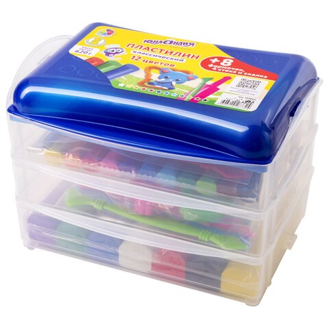 Пластилин в боксе ЮНЛАНДИЯ "ЮНЛАНДИК В ЗООПАРКЕ", 12 цветов, 620 г, скалка, 4 стека, 8 формочек, 105866