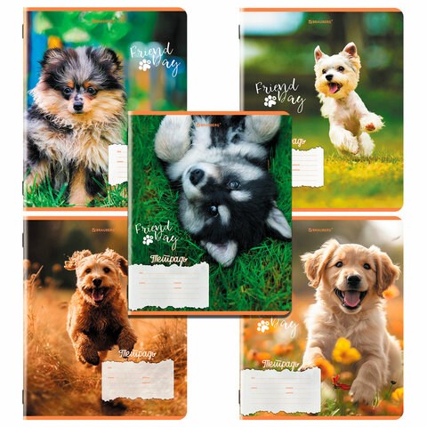 Тетрадь 18 л. BRAUBERG клетка, обложка картон, СОБАЧКИ, 107295