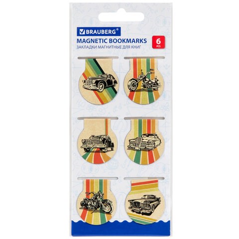 Закладки для книг МАГНИТНЫЕ, "AUTO", набор 6 шт., 32х28 мм, BRAUBERG, 113167