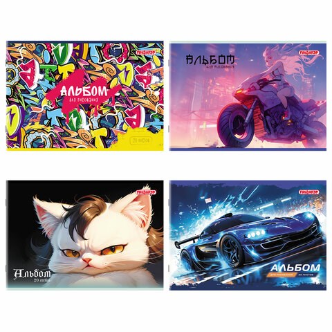 Альбом для рисования А4, 20 листов, скоба, обложка офсет, ПИФАГОР, 203х288 мм, "МИКС-1", 107102