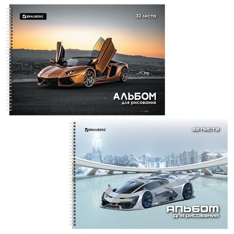 Альбом для рисования А4 32 л., гребень, выборочный лак, BRAUBERG, 195х285 мм, "Суперкар" (2 вида), 106699