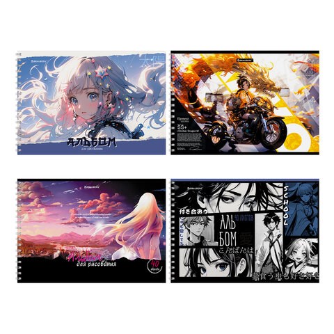 Альбом для рисования А4, 40 л., гребень, обложка картон, BRAUBERG, 195х285 мм, "АНИМЕ" (4 вида), 107119