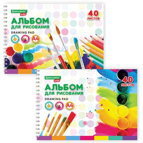 Альбом для рисования, А4, 40 листов, гребень, обложка картон, BRAUBERG KIDS, 195х285 мм, "Творчество" (2 вида), 106684