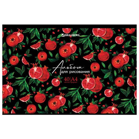 Альбом для рисования, А4, 40 листов, скоба, глянцевый лак, BRAUBERG, 200х285 мм, "Гранаты", 106705
