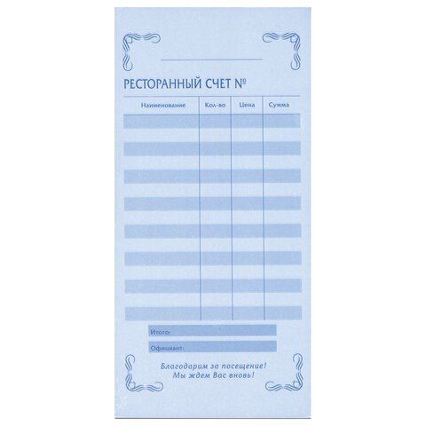 Вид бланкаРесторанный счет.