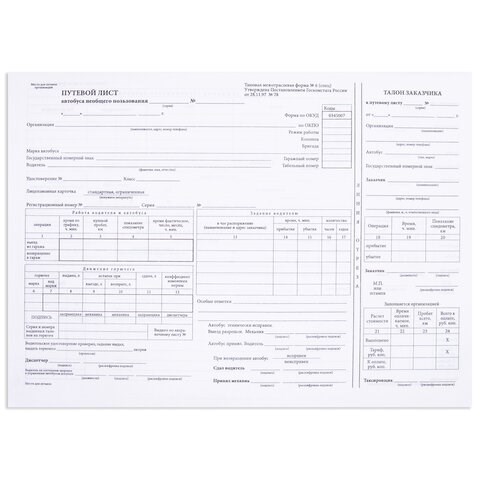 Бланк "Путевой лист автобуса не общего пользования" STAFF соответствует государственным стандартам документального ведения учета. Внутренний блок проклеен по одному краю.