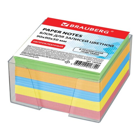 Блок для записей BRAUBERG в подставке прозрачной, куб 9х9х5 см, цветной, 122226