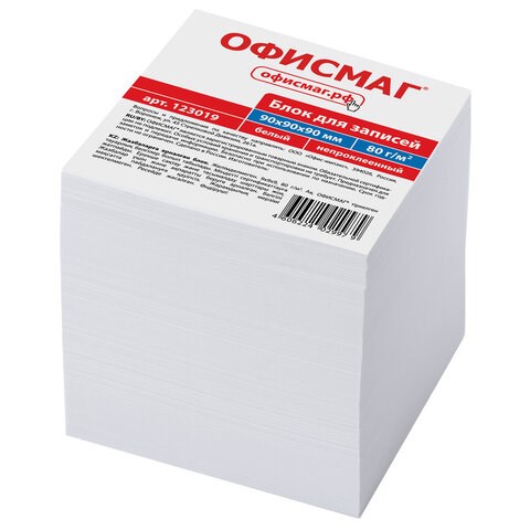 Блок для записей ОФИСМАГ непроклеенный, куб 9х9х9 см, белый, белизна 95-98%, 123019