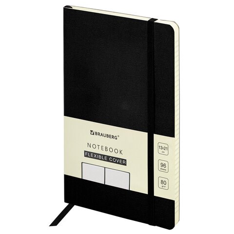 Блокнот А5 (130х210 мм), BRAUBERG ULTRA, под кожу, 80 г/м2, 96 л., линия, черный, 113016