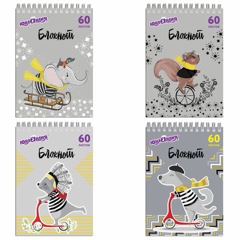 Блокнот А5 146х205 мм, 60 л., гребень, картон, клетка, ЮНЛАНДИЯ, "Непоседы", 129815