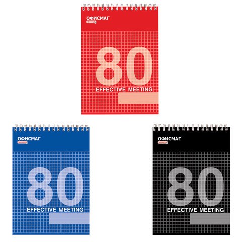 Блокнот А5 146х205 мм, 80 л., гребень, мелованная картонная обложка, клетка, ОФИСМАГ, 3 вида, 123021