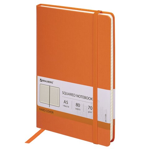 Блокнот А5 (148x218 мм), BRAUBERG "Metropolis", балакрон, 80 л., резинка, клетка, оранжевый, 111584