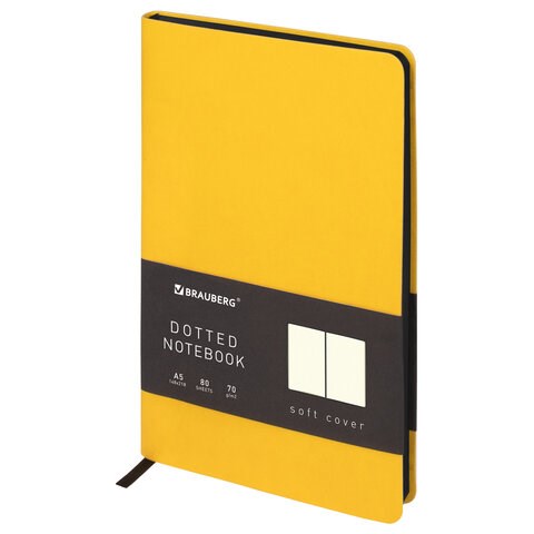 Блокнот А5 (148x218 мм), BRAUBERG "Metropolis Mix", под кожу, 80 л., в точку, желтый, 113316