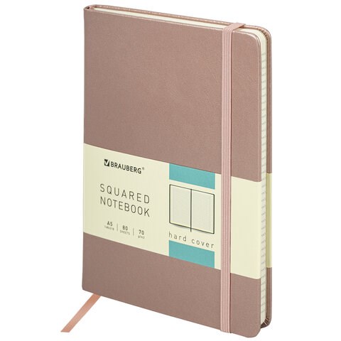 Блокнот А5 (148x218 мм), BRAUBERG "Metropolis Special", под кожу, 80 л., резинка, клетка, медный, 113334