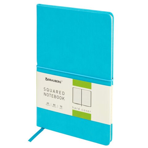 Блокнот А5 (148x218 мм), BRAUBERG "Metropolis X", под кожу, 80 л., резинка, клетка, бирюзовый, 111035