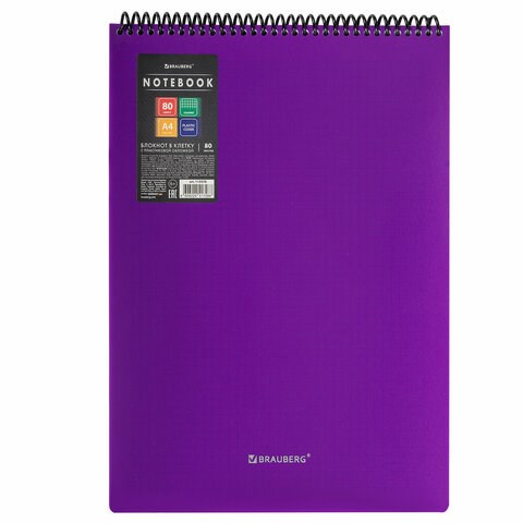 Блокнот БОЛЬШОГО ФОРМАТА А4, 80 л., обложка пластик, клетка, BRAUBERG "Metropolis", ФИОЛЕТОВЫЙ, 115576
