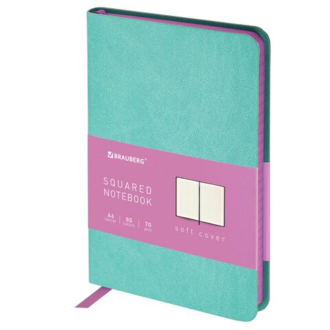 Блокнот МАЛЫЙ ФОРМАТ (100x150 мм) А6, BRAUBERG "Metropolis Mix", под кожу, 80 л., клетка, мятный, 113330