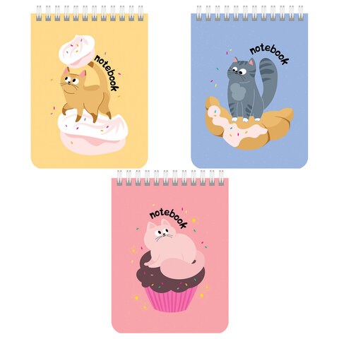 Блокнот МАЛЫЙ ФОРМАТ А6 108х145 мм, 40 л., гребень, картон, клетка, BRAUBERG KIDS, "Котики", 114396