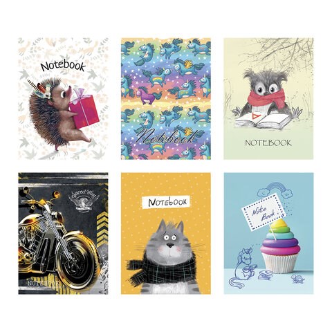 Блокнот МАЛЫЙ ФОРМАТ А7 75x105 мм, 40 л., гребень, фольга, TWIN лак, клетка, "МИКС 5" (6 видов), 099104
