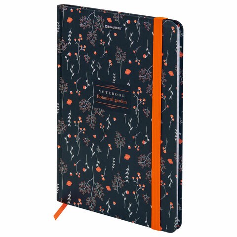 Блокнот с резинкой в клетку 96 л., А5 145х203 мм, твердая обложка, BRAUBERG, "Flowers", 116317