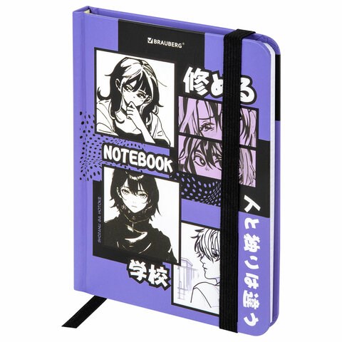 Блокнот с резинкой в клетку 96 л., МАЛЫЙ ФОРМАТ А6, 109х148 мм, твердая обложка, BRAUBERG, "Anime", 116336