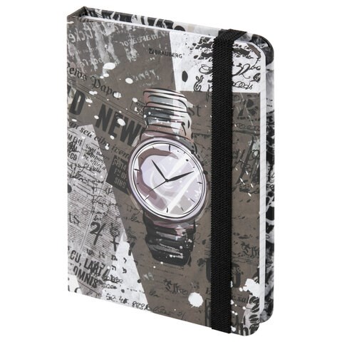 Блокнот с резинкой в клетку 96 л., МАЛЫЙ ФОРМАТ А6 (109х148 мм), твердая обложка, BRAUBERG, "Часы", 113737
