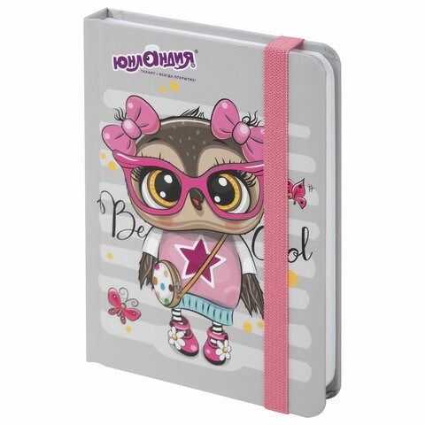 Блокнот с резинкой в клетку 96 л., МАЛЫЙ ФОРМАТ А6 (109х148 мм), твердая обложка, ЮНЛАНДИЯ, "Совушка", 113743