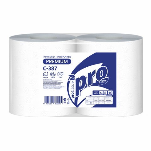 Бумага протирочная 350 м с перфорацией, PROtissue (W1) 2-слойная, 1000 листов 24х35 см, КОМПЛЕКТ 2 шт., С387