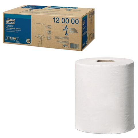 Бумага протирочная с центральной вытяжкой 270 метров, TORK Reflex (M4) 1-слойная, КОМПЛЕКТ 6 рулонов, 120000