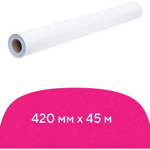 Бумага широкоформатная рулон для плоттера, 420 мм х 45 м х втулка 50,8 мм, 80 г/м2, белизна CIE 146%, BRAUBERG, 110625