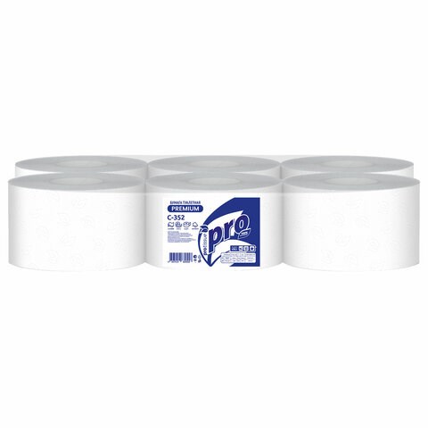 Бумага туалетная 215 м с центральной вытяжкой PROtissue (T8) PREMIUM, 2-слойная, белая, КОМПЛЕКТ 6 шт., С352