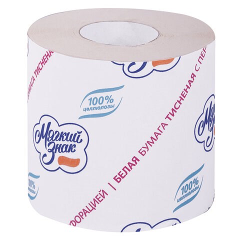 Бумага туалетная бытовая, 51 м, МЯГКИЙ ЗНАК, на втулке, С28, белая
