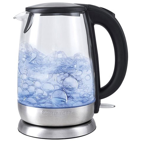 Чайник KITFORT КТ-619, 1,7 л, 2200 Вт, закрытый нагревательный элемент, стекло, серебристый, KT-619