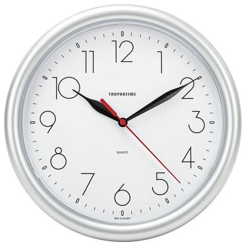 Часы настенные TROYKATIME (TROYKA) 21270212, круг, белые, серебристая рамка, 24,5х24,5х3,1 см