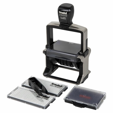 Датер самонаборный металлический, 6 строк+дата, оттиск 68х47 мм, сине-красный, TRODAT 5485, кассы в комплекте