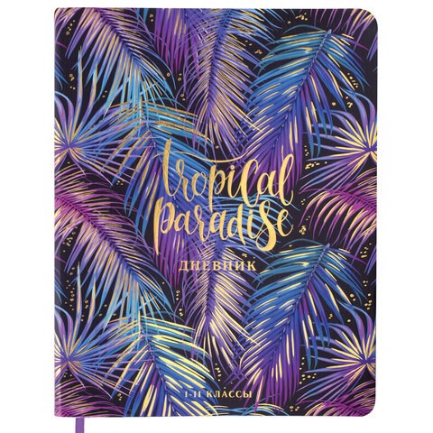 Дневник 1-11 класс 48 л., кожзам (гибкая), печать, фольга, BRAUBERG, "Тропики", 106173