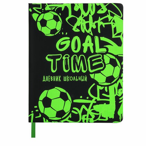 Дневник 1-11 класс 48 л., кожзам (твердая с поролоном), флуоресцентный, BRAUBERG, "Футбол", 106908
