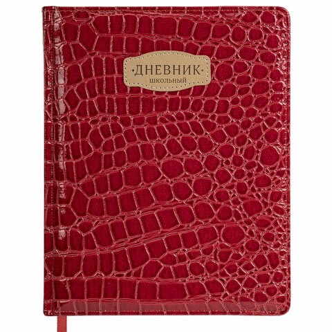 Дневник 1-11 класс 48 л., кожзам (твердая с поролоном), нашивка, BRAUBERG "CROCODILE", красный, 106938