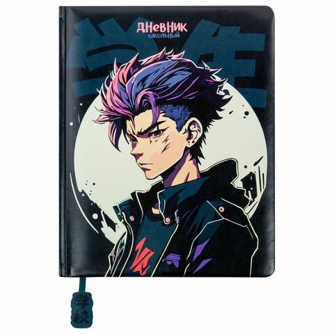 Дневник 1-11 класс 48 л., кожзам (твердая с поролоном), печать, ляссе с аппликацией, BRAUBERG, "Аниме", 106959